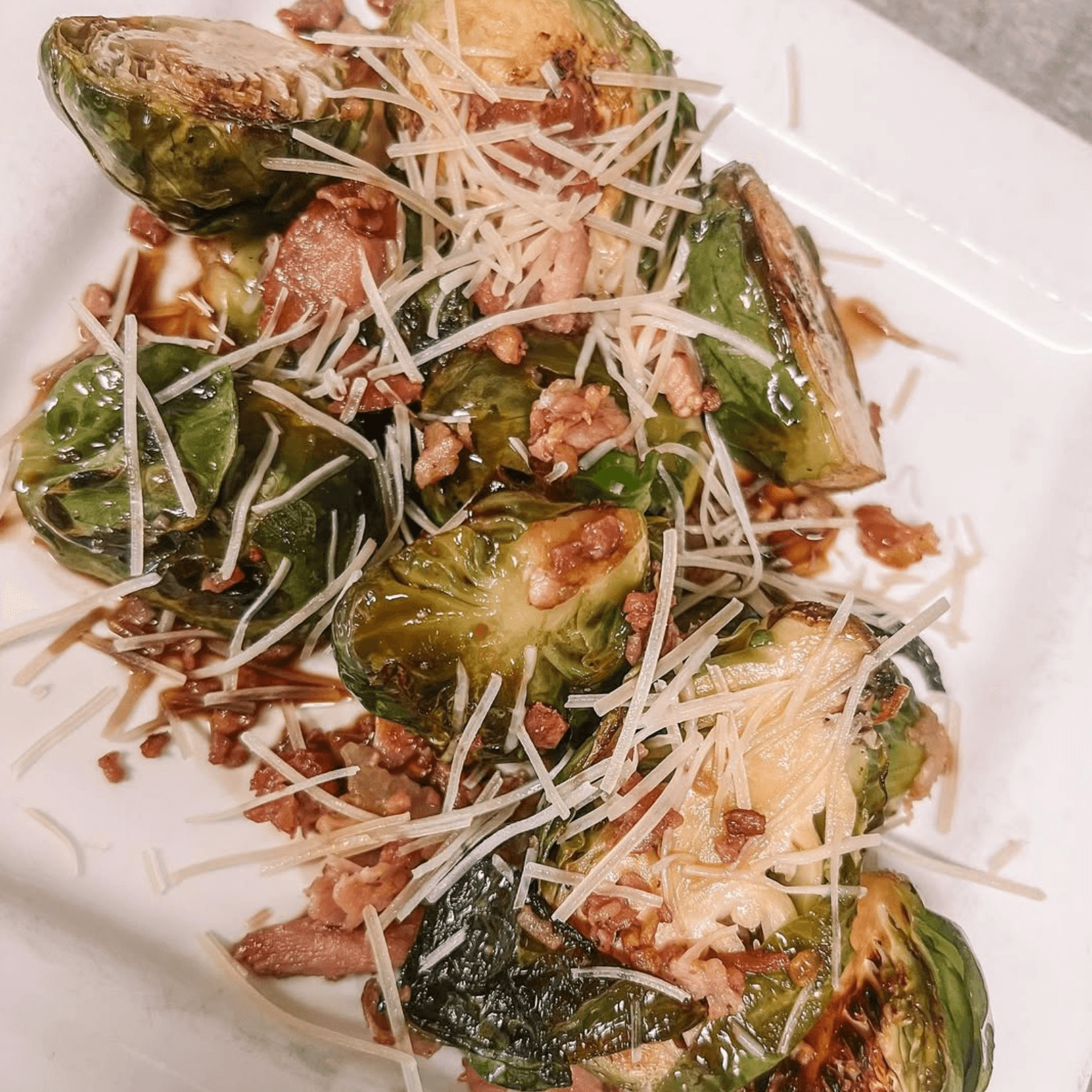 Pan fried with applewood bacon, dusted with Parmesan cheese, drizzled with citrus balsamic glaze
